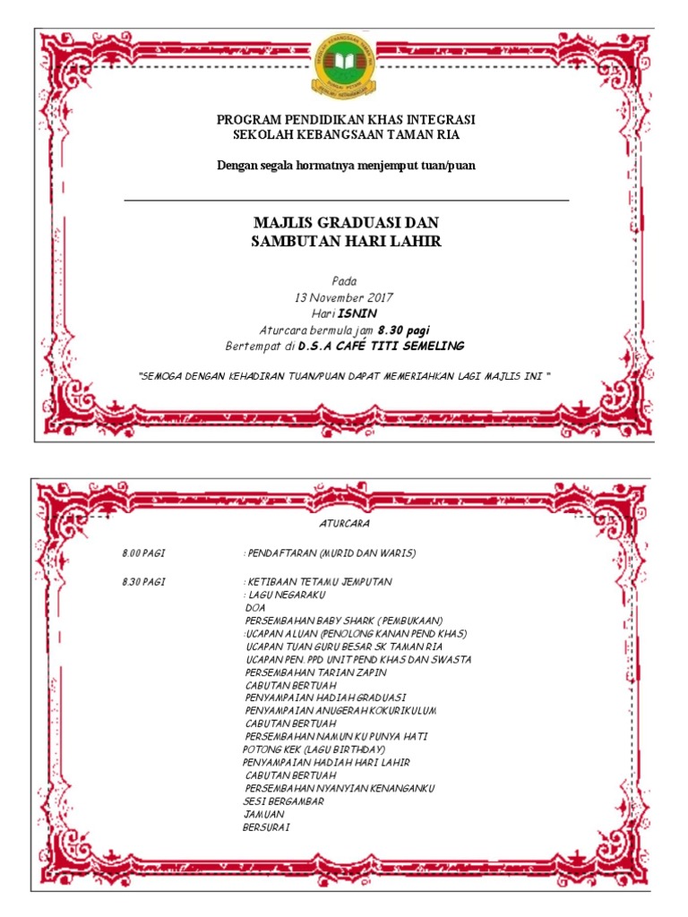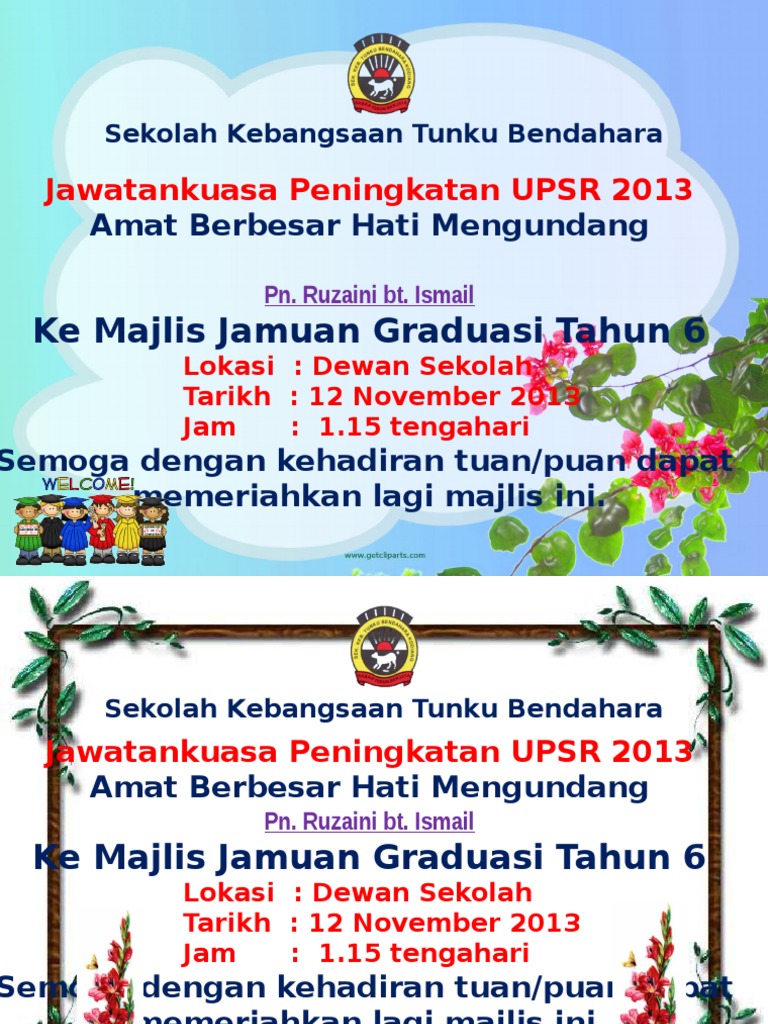 Create html5 flipbook from pdf to view on iphone, ipad and android devices. Ke majlis jamuan graduasi tahun 6. Upload, livestream, and create your own videos, all in hd. Untuk tempahan design & printing kad ucapan/ kad jemputan, fiza buat satu size je. Kad jemputan kahwin tempah vs kad diy.
